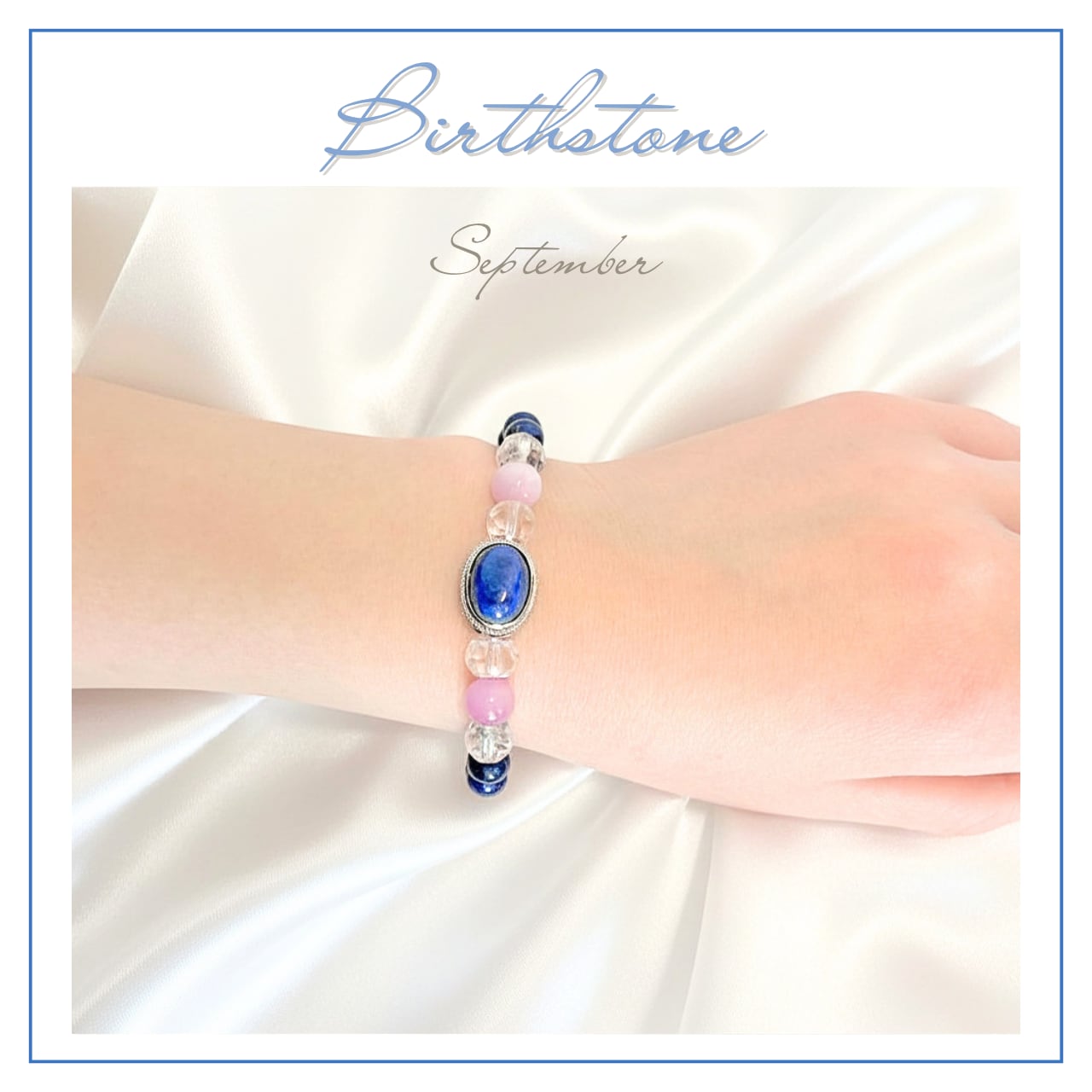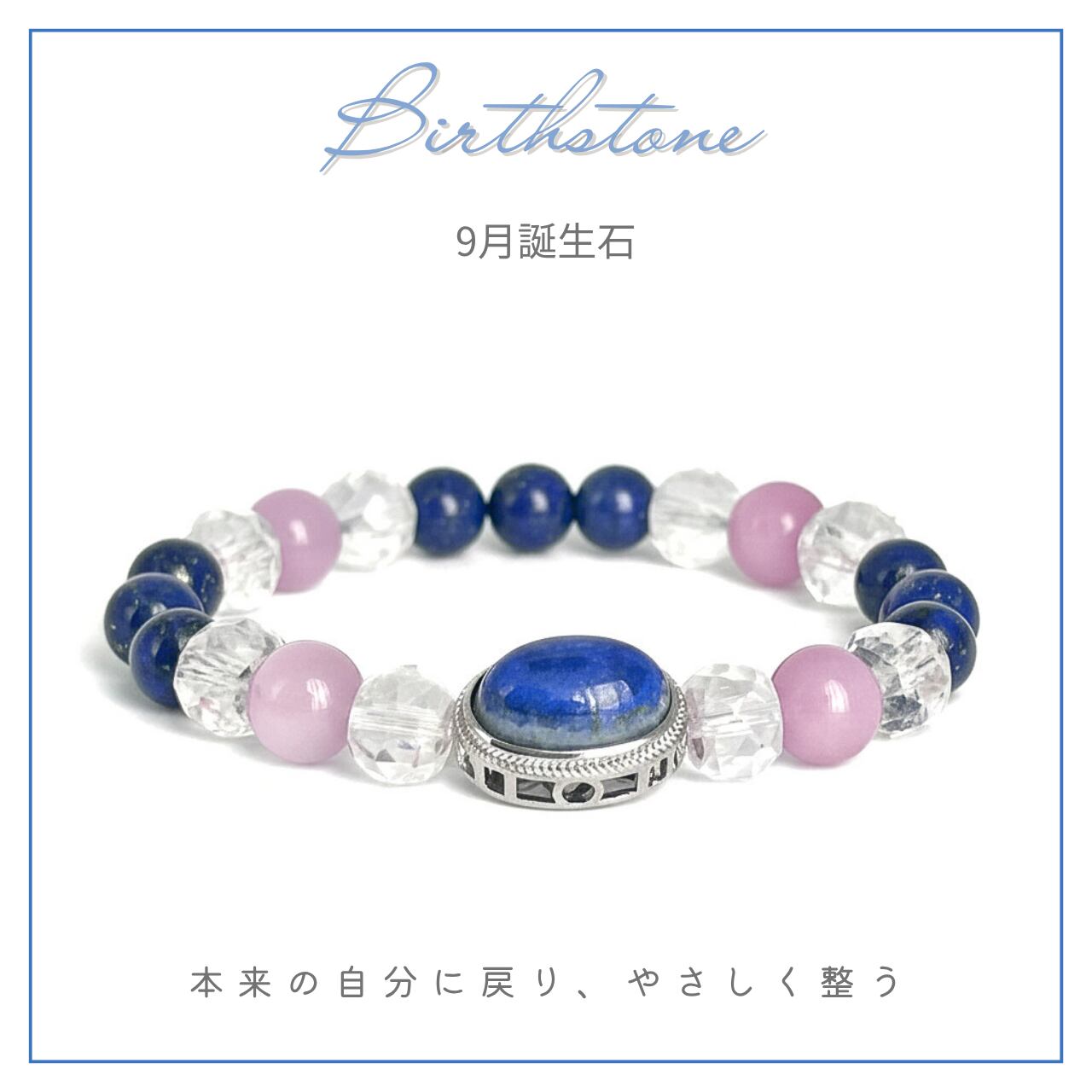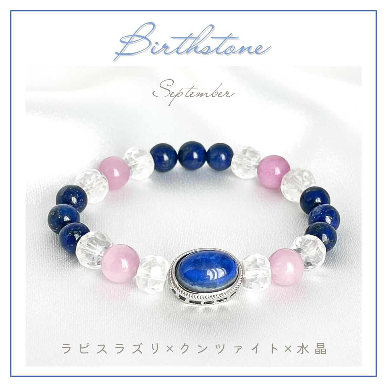 〜9月誕生石ブレスレット〜ラピスラズリ、クンツァイト、水晶を組み合わせた、心を豊かにする美しいブレスレットです。身に着けることで、あなたの日常に洞察と愛のエネルギーをもたらすアイテムとしてお勧めいたします。