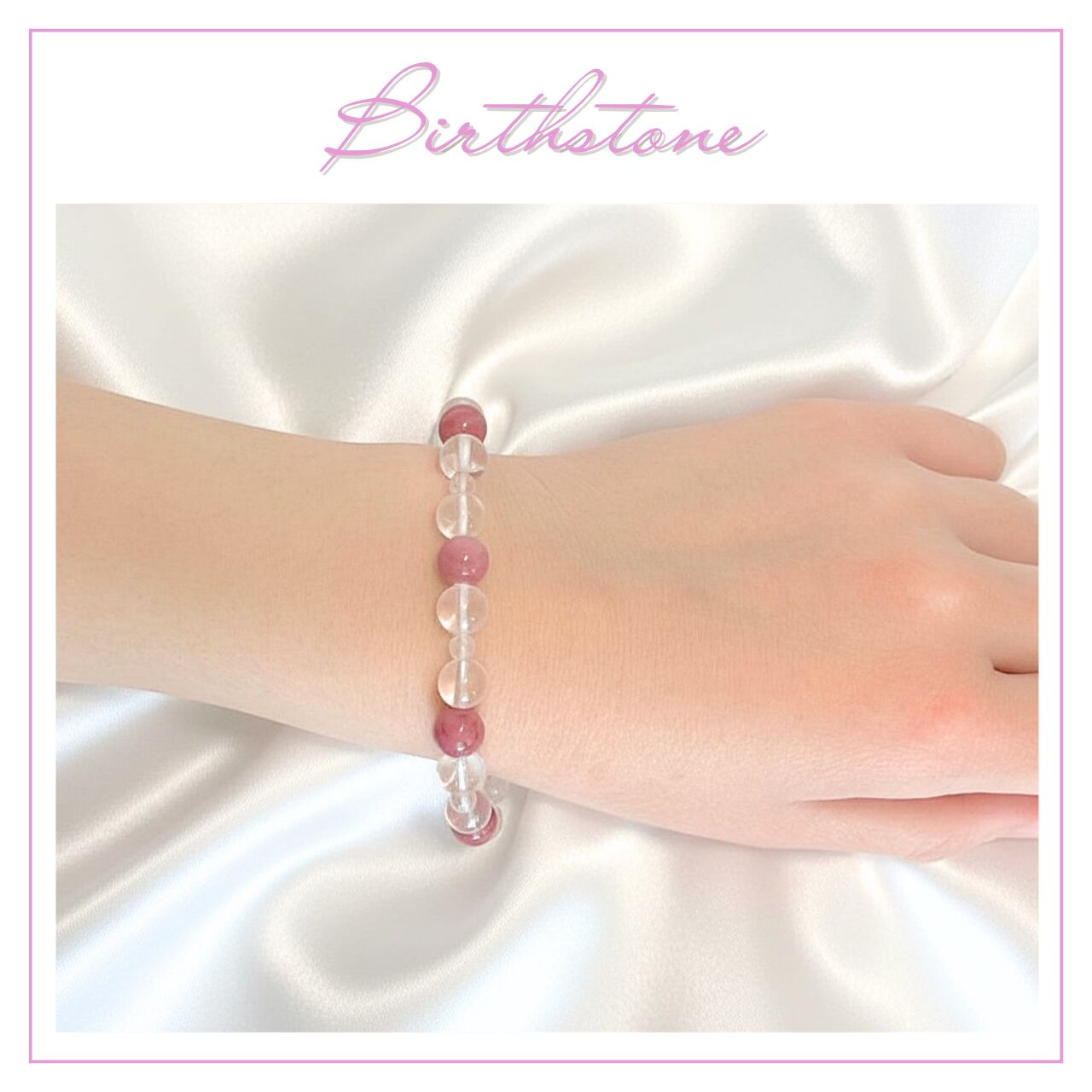 「☆10月生まれのあなたへ」は、10月の誕生石であるローズクオーツを中心に、ロードナイトと水晶を組み合わせた特別なブレスレットです。このアイテムは、身に着けることで愛や癒しのエネルギーを引き出し、心の安定をもたらす特別な存在です。