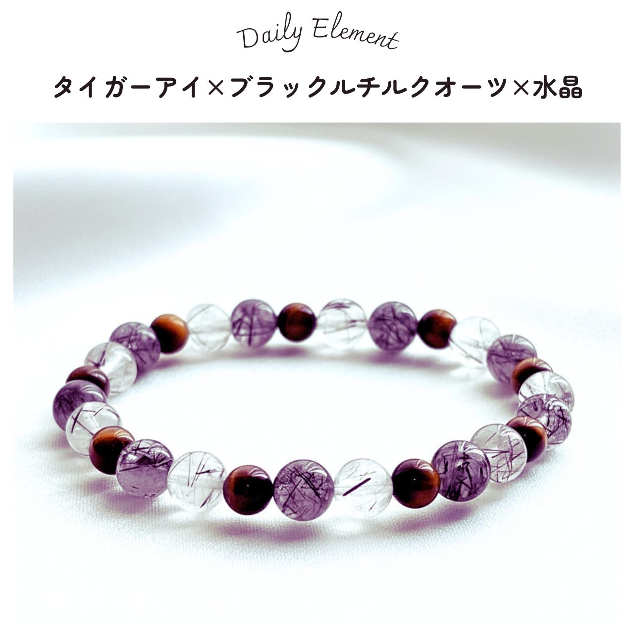 〜デイリーブレスレット〜タイガーアイとブラックルチルクオーツを組み合わせた、心に響く魅力的なブレスレットです。身に着けることで、日常に幸運と自信をもたらすアイテムとしてお勧めいたします。