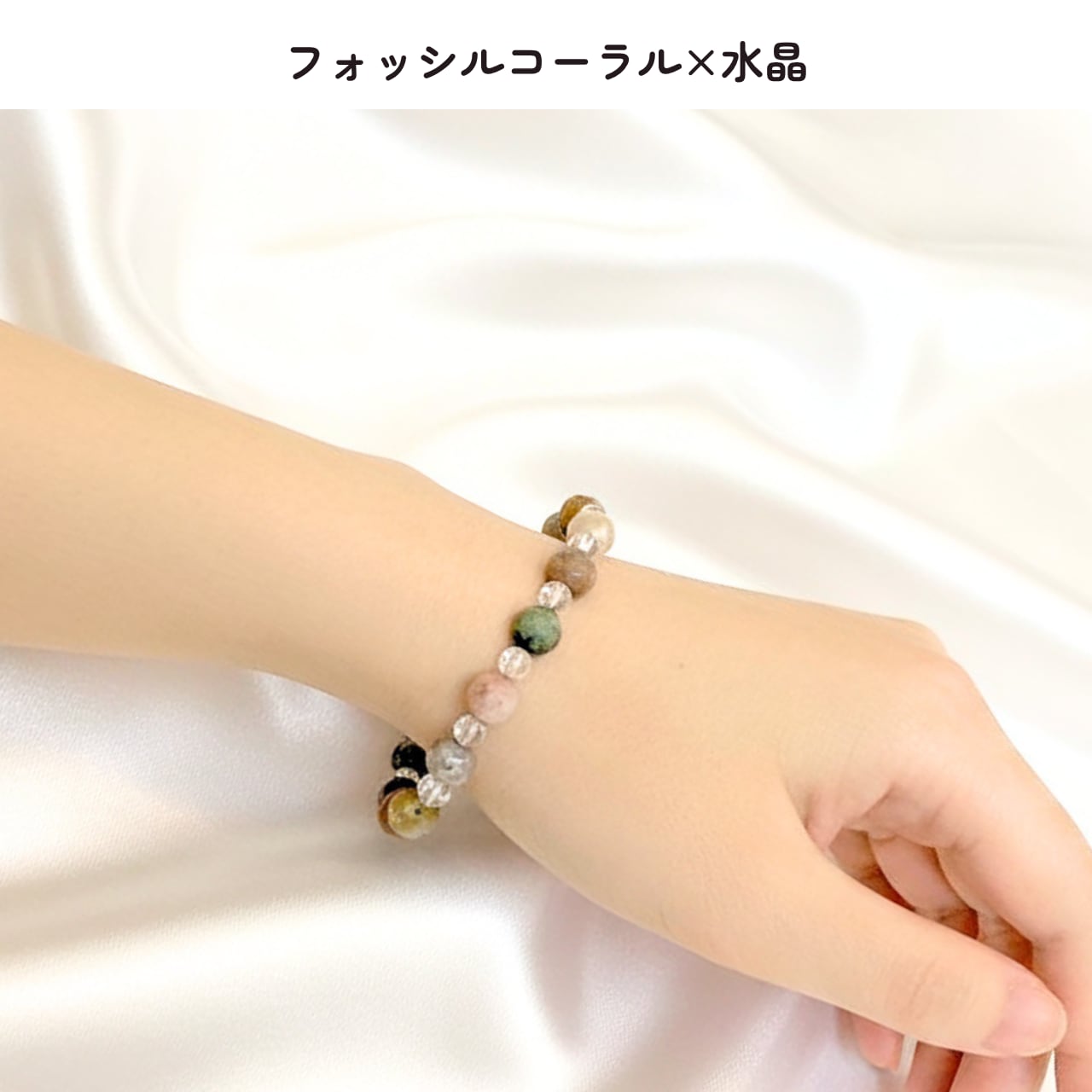 - 素材:フォッシルコーラル約8㎜、水晶約6㎜