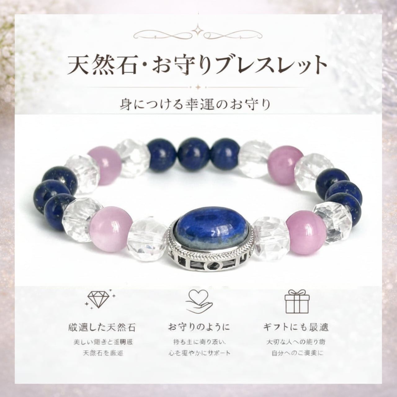 お守りブレスレット~ラピスラズリ×クンツァイト×水晶~